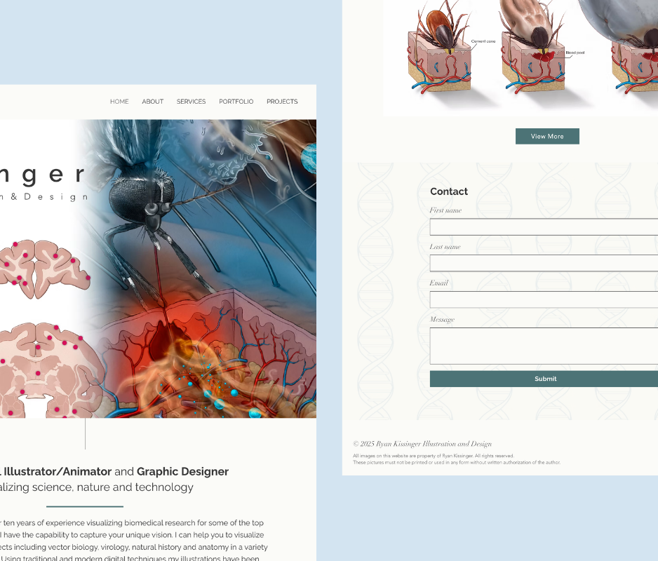 A Wix portfolio site for a Montana scientific illustrator, featuring publications, freelance services, and a professional yet artistic design that appeals to both researchers and creative clients.
